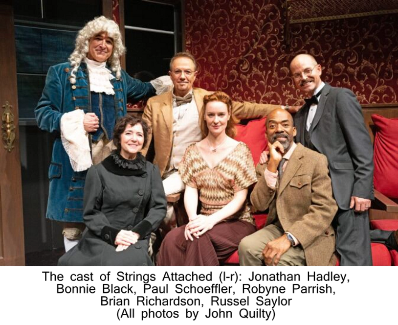 Strings Attached played Off-Broadway at Theatre Row. The show was directed by Alexa Kelly and starred Robyne Parrish (A Man Called Otto, HBO Max's Gossip Girl), Brian Richardson (A Man for All Times), Paul Schoeffler (Sweet Charity), Bonnie Black, Jonathan Hadley (Jersey Boys), and Russell Saylor.